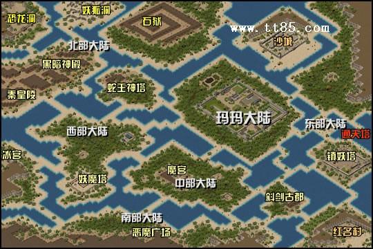 首先如果您在游戏中看不见地图,请到主页www.tt85.com下载完整客户端,有客户端的玩家可以下载地图、装备补丁就好了,我在这里给各位新手说说如何玩,废话少说!进入正题!蜈蚣洞从玛法大陆的NPC真蜈蚣班车进入-此地图类的怪物很容易杀死,经验值也挺高的ˉˉ强烈推荐练级地点刷怪量超多的地图ˉˉˉ(镇妖塔1-2层)(邪剑古都1-3层)(天之炼狱1-5层)(魔宫1-2层)(神秘1-6)(未知暗殿)在这里练级快而且还有点47-50的装备爆,运气好打的出51的!很快你练到51级了,想要52级的装备?其实不难<地狱烈焰>每10分钟刷一次,6个(暗之),一般来说打6个暗之必爆一个52的装备,运气好一次打的到3-4个!到53级了,带上你52的装备前往(天之炼狱,火龙洞,等.反正还有很多,一般10000血以上的怪物都有爆)54级了你可以去(邪剑古都5层或石狱1-3层)这2处打到真爱,霸主装备!当你打到一套真爱后就可以到(镇妖3,石狱1-3,魔宫等高等级的地方打一些好装备)注:镇妖3爆57系列的装备!想打60级的霸主装备去(恶魔广场,镇妖塔顶层,魔宫7-13层,邪剑古都里的每一个大小boss都有一定的机率爆),70级到天之炼狱最后一层转生,转生后(在魔宫9-13层)打转生装备,怪物有点猛,组队去打!~~~转生套装(魔圣套装-1转生后佩带)-魔宫3-13层的怪物都都一定的机率爆出~~转生套装(蝴蝶套装-2转生后佩带)-黑暗神殿1-6层的怪物爆出!!!另:武器升级马上取也是本版本的特点。猪7,8,9,邪恶之都都有触龙神刷,玩家可以到这里打到修炼手镯,安全区自动泡点,每6分钟增加200W经验,沃玛号角去火龙洞或沃玛3,打沃玛教主爆,打装备地图备注:打装备地图(既非挂机地图禁止使用火墙技能),有的人问为什么要禁止,因为此版本中的怪物攻击,防御,魔御比前几个版本中降低了好几倍,基本都受魔法攻击,而且提高了装备的爆率,所以我们把该技能禁止了。